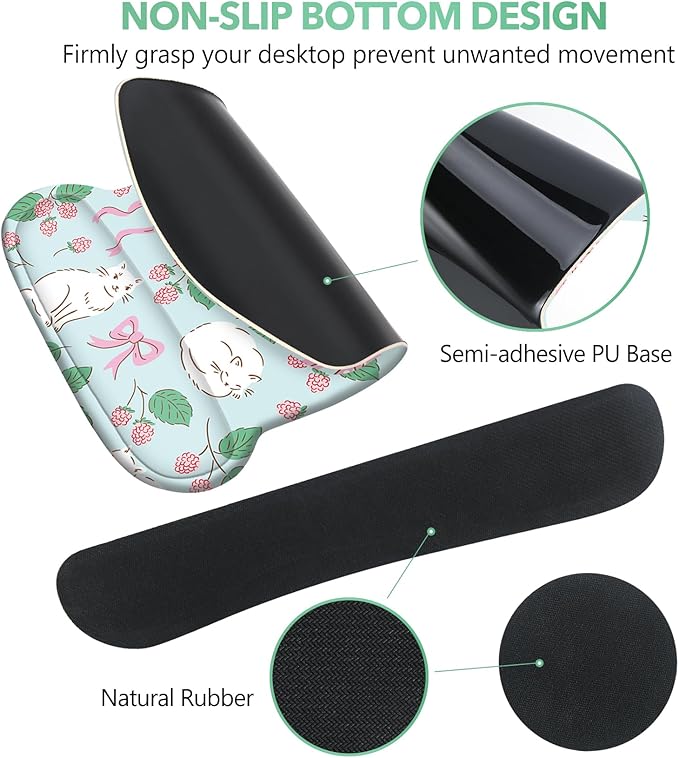 - Ergonomic Wrist Rest Design. The mouse pad set designed with curved shape wrist rest, filled in premium memory foam, keeps your hand in a neutral position for ergonomic comfort, maximum relieve the pain and tiredness to your hand, wrist, elbow, shoulder while typing or playing games. Soft breathable Lycra fabric is smooth and silky, allow the mouse to slide easily.