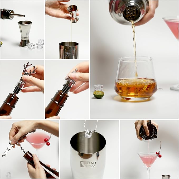 - [Professional Mixing Experience Ideal Gift Choice] This bartending set is specially designed for mixology enthusiasts and professional bartenders. The size and functions of the tools have been carefully considered to provide a professional mixing experience. Whether it's for friends and family who love bartending, or as a holiday gift or housewarming present, it can showcase your taste and make the recipient feel your thoughtfulness.