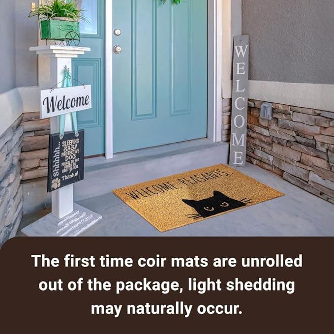 KANKUN Coco Coir Door Mat with Heavy Duty Backing, Welcome Doormat (17" x 30"), Doormat Entrance (Welcome Cat)