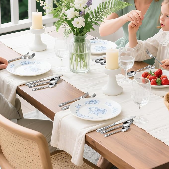 - Forged from Premium 18/10 Stainless Steel: Our cutlery is constructed from the finest 18/10 stainless steel, ensuring exceptional durability and superior corrosion resistance. The higher nickel content provides a brilliant, long-lasting luster that resists tarnishing and fading, guaranteeing your set remains stunningly beautiful for a lifetime of use.