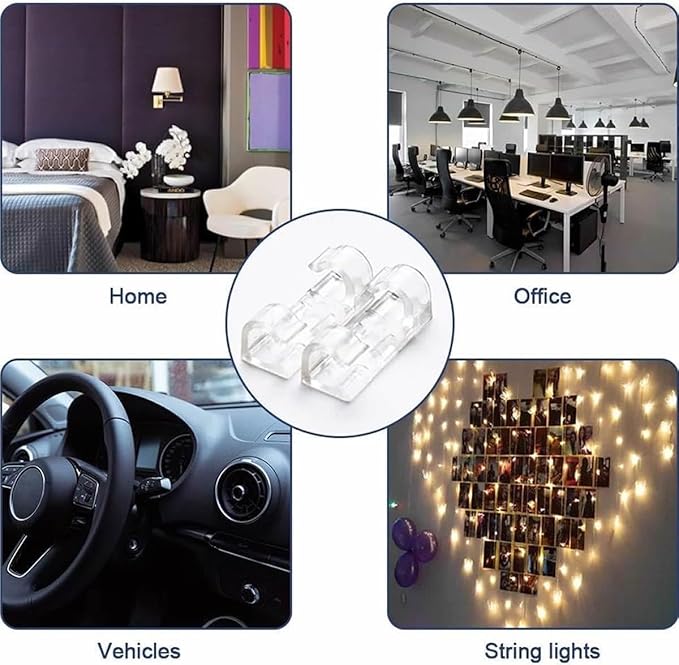 - βοΈ π Strong Adhesive Base β Secure Fixation With its high-adhesive surface, the clips adhere firmly to all flat surfaces. No drilling or screws are required for installation.