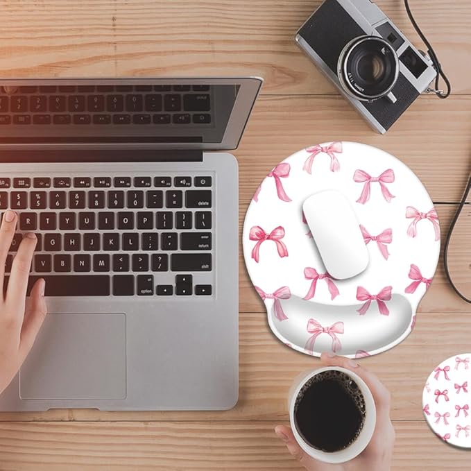 - Functional Coaster and Coordinated Aesthetics: Keep drinks secure and desks pristine with our 3.9" non-slip coaster, designed to catch every coffee spill and condensation ring. Paired with the cute mouse pad with wrist rest, they share identical artistic designs—modern marble, kawaii florals, or retro pixels—to transform your workspace into a clutter-free stylish sanctuary.