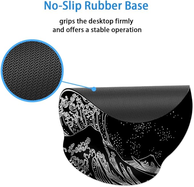 Mouse Pad with Wrist Support, Ergonomic Mouse Pad with Memory Foam Wrist Rest Cushion, Non-Slip Rubber Base Gaming Mice Pad for Home Office Computer Laptop,Japanese Wave