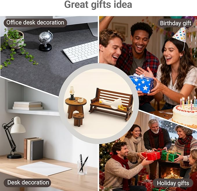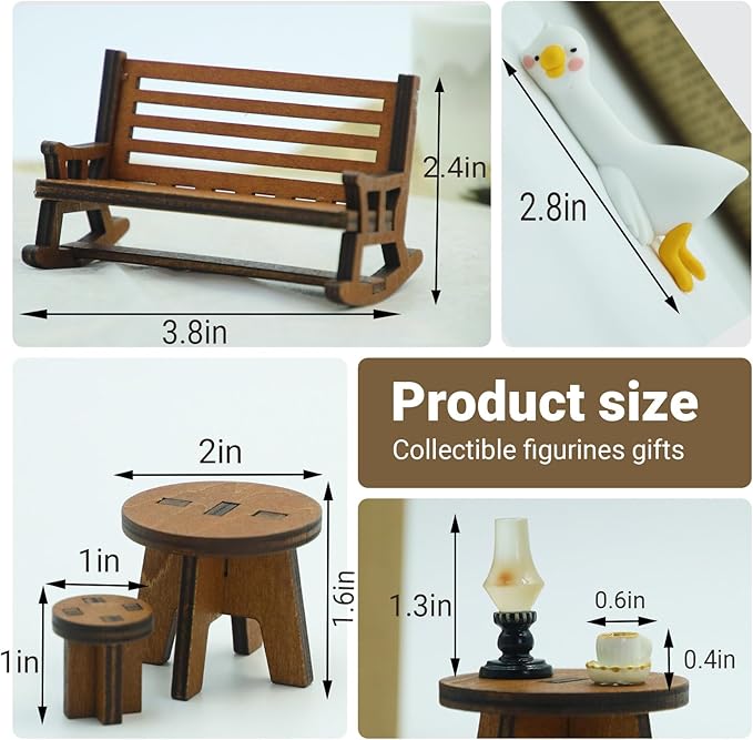 - Perfect Gifts: The charming miniature figurines decor make a perfect cute gift for white goose, duck, pomelo or animal lovers The tiny wooden table, stool & rocking chair sets are perfect for dollhouses, creative dioramas, desktop displays, or as a unique decorative accent. they are nice gifts for friends, family,colleagues for Christmas, anniversary, birthday etc.