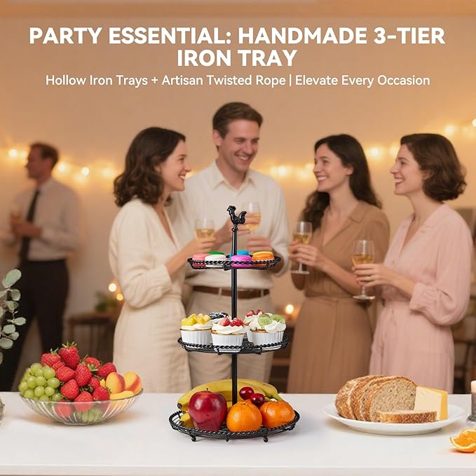 - All-Iron Tiered Tray Decorations: Crafted from sturdy iron, this 3 tier tray is built to last. This sturdy material ensures its durability, resisting wear and tear, making this tiered serving trays suitable for long - term use