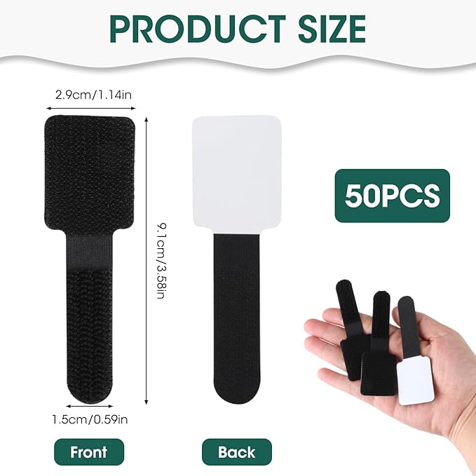 - Compact Size & Durable Build: Measuring 1.18×3.54×0.59in, these black straps feature strong hook-and-loop fabric that grips firmly without slipping. Their compact design fits tight spaces, ideal for cord organizer and wire organizers for cords setups.