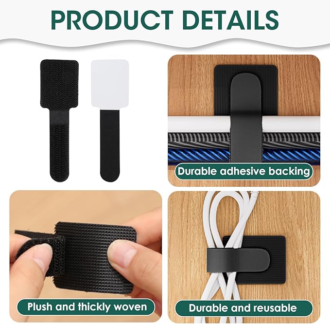 - Surface & Weight Tips: For best results, apply to clean, dry surfaces (wood, glass, metal). Avoid overloading—each strap secures up to 5 cords to prevent slipping, ensuring reliable wire organizer and cable management under desk performance.