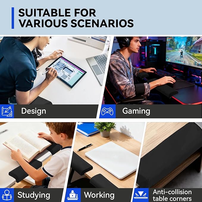 - Widely Used: Desk elbow rest pad is suitable for most people, effectively relieving hand pressure. It can be used in offices, on school desks, at home desks, for gaming, and more