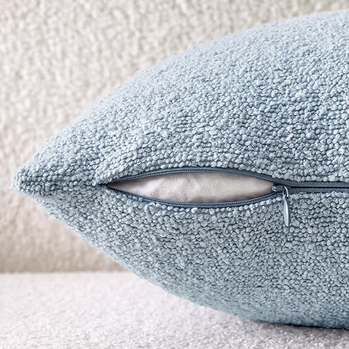 Woaboy Pack of 2 20x20 Inch Decorative Boucle Throw Pillow Covers Textured Square Pillowcaes Accent Solid Cozy Soft Cushion Covers Home Decor for Sofa Couch Living Room Home Decor,Coastal Light Blue