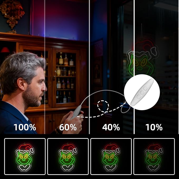 - Christmas Neon Sign: Add a unique flair to your Christmas decorations! Featuring a well-known cartoon image, we bring you a special Christmas neon light. Its unique shape will make your holiday atmosphere even more eye-catching.Whether as a Christmas neon wall decoration or a Christmas gift for family and friends, this neon light will leave a lasting impression