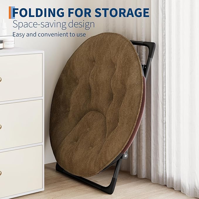 Saucer Chair, Faux Fur Circle Chair, Foldable Lounge Chair for Adults, Teens & Kids, Folding Moon/Mushroom/Round Style Comfy Accent Seat for Bedroom, Dorm & Gaming
