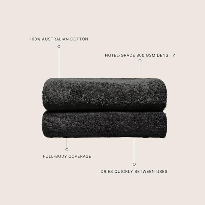 Italic Ultraplush 100% Australian Cotton Bath Sheets - Set of 2 Luxury Extra Large Heavy Duty Bath Sheets, 800GSM Plush and Absorbent Bath Sheets for Hotels, Bath & Spa (Black)