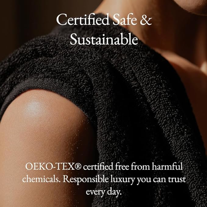 - Oeko-Tex Certified for Eco-Friendly Comfort – Certified by the Oeko-Tex Standard 100, these towels are guaranteed free of harmful chemicals, ensuring safety for you and your family. The towels are made from sustainably sourced Australian cotton, known for its high quality and water-efficient cultivation, so you can indulge guilt-free in everyday luxury
