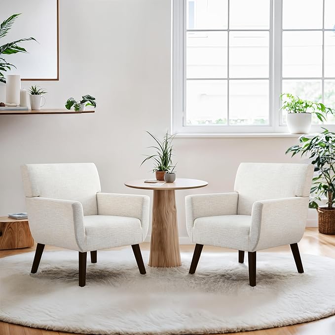Upholstered Accent Chair,Mid Century Modern Office Fabric Small Living Room Chair with Arm,Comfy Wingback Armchair for Bedroom Reading (Beige, 2 PC)