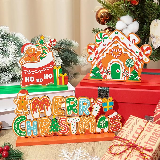 - Sturdy Wooden Design: Crafted from durable wood with colorful prints, these Christmas table accents are made to look bright and festive throughout the holiday season