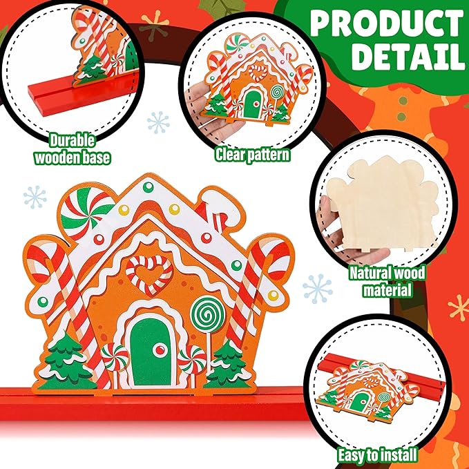 - Complete Holiday Set of 6: Bring home the magic of Christmas with a full set of 6 wooden decorations, including a gingerbread train, candy house, joyful holiday signs, and festive stocking, each piece adds playful charm to your seasonal décor