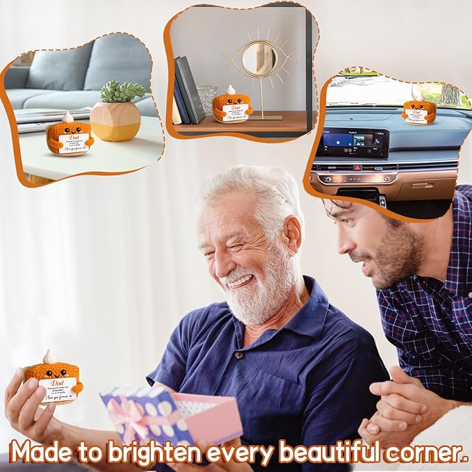 Thank You Gifts for Dad from Daughter Son Wife, Mini Crochet Pumpkin Pie Plush Birthday Gifts for Dad Bonus Step Fathers, Halloween Thanksgiving Christmas Stocking Stuffer Emotional Small Cute Decor