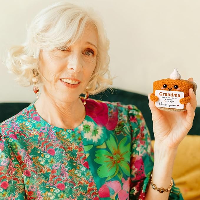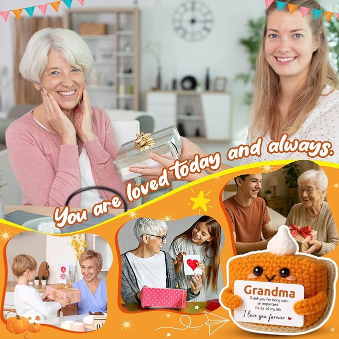 Thank You Gifts for grandma birthday gifts, Mini Crochet Pumpkin Pie Plush, Mothers Day Adorable Grandma Presents for Halloween Thanksgiving Christmas Stocking Stuffer Emotional Small Cute Decor