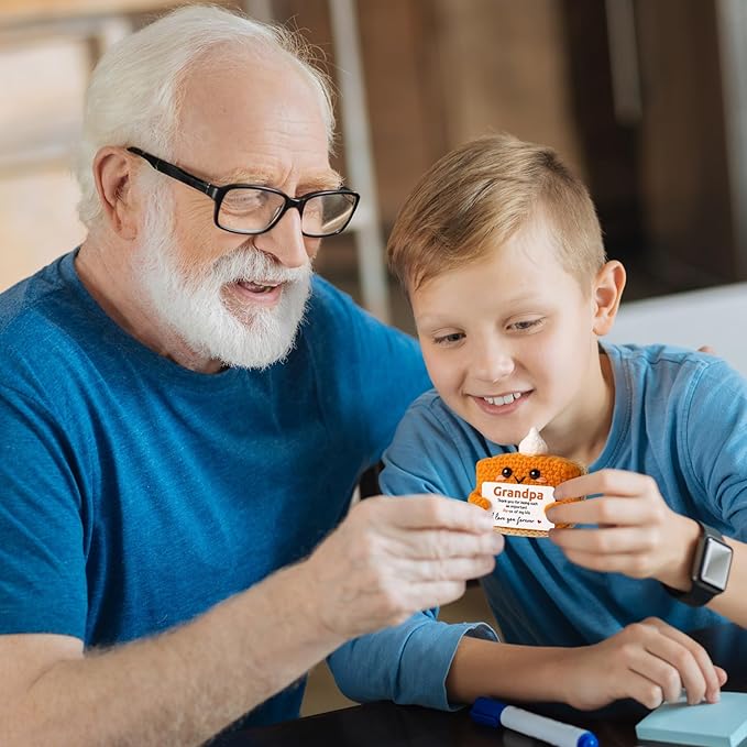 Thank You Gifts for grandpa birthday gifts, Mini Crochet Pumpkin Pie Plush, Father's Day Adorable Grandpa Presents for Halloween Thanksgiving Christmas Stocking Stuffer Emotional Small Cute Decor