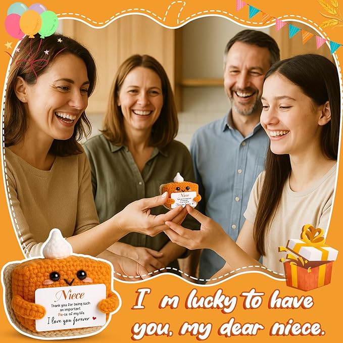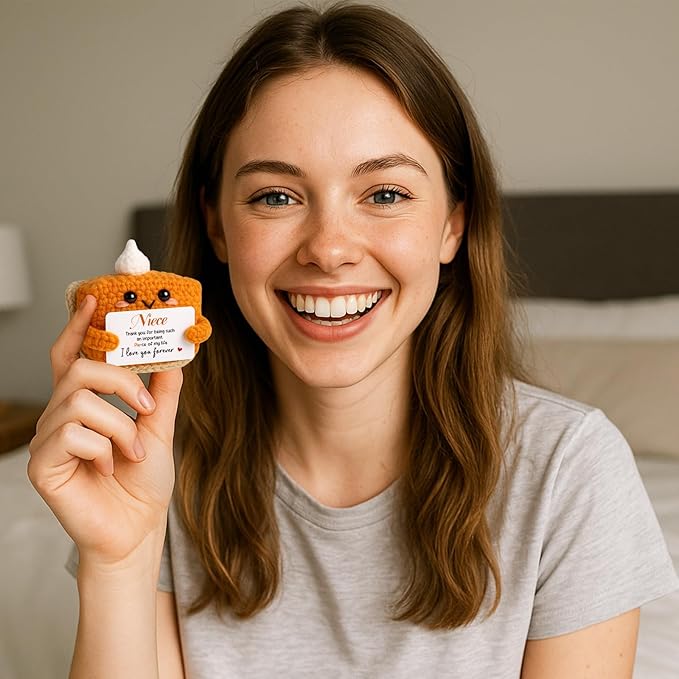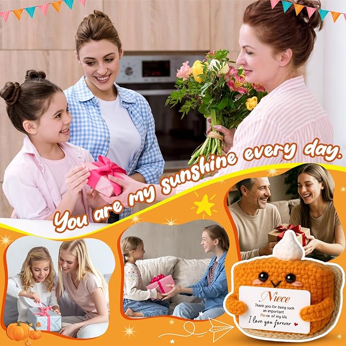 Thank You Gifts for Niece from Auntie Uncle, Mini Crochet Pumpkin Pie Plush, Birthday Presents for Halloween Thanksgiving Christmas Stockings Stuffer Emotional Small Cute Decorations