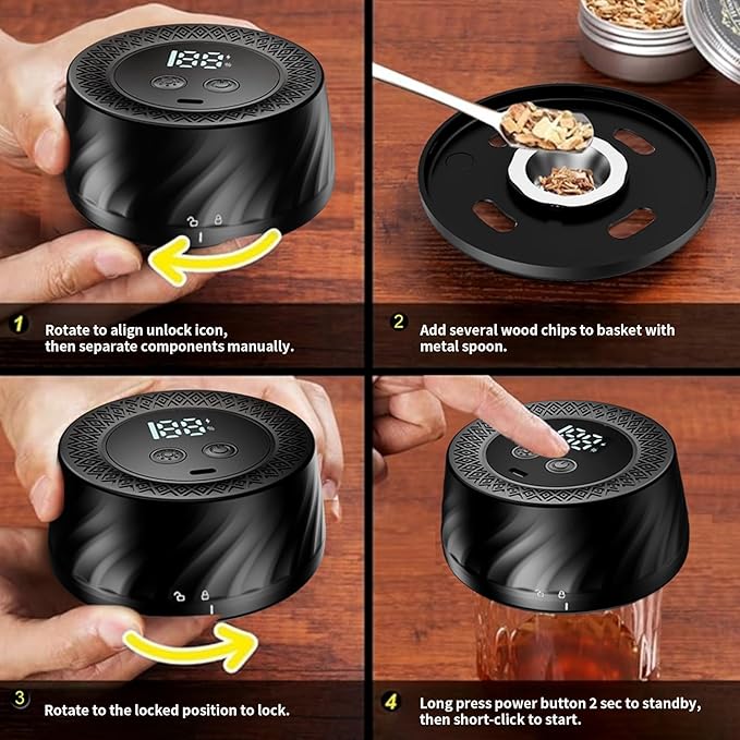 - User-Friendly & Versatile: Designed to fit all standard glass sizes, this electric old fashioned smoker kit is simple to use. Just place it on your glass, press for two seconds to activate, and let the natural aromas fill your drink. It's also ideal for meats, cheese, BBQ, and more, enhancing a wide range of flavors