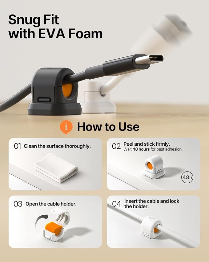 - Enhanced Magnetic Hold (~2.5x vs previous model): Upgraded magnets plus EVA foam assist grip keep heavier cables like HDMI or thick braided leads set in place up to 7.5 mm, reducing slip on desks, nightstands, and car dashboards