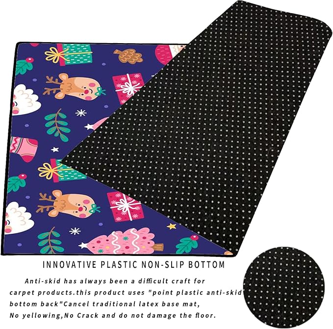 - Materials: Our Xmas Santa Claus Reindeer Christmas Tree Soft Machine Washable area rug is meticulously crafted from high-quality soft fibers, is constructed with long-lasting fibers and features dense machine-woven technology to withstand heavy foot traffic and potential pet scratching. Delivering not just striking design but also a sumptuously soft texture.