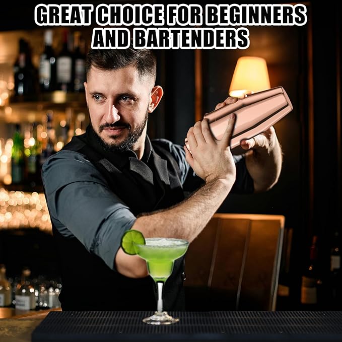 IOV Cocktail Shaker, 24 oz Martini Shaker, Drink Mixer with Built-in Strainer, Professional Stainless Steel Margarita Alcohol Shaker with Cocktail Recipe Guide, Bartender Kit Gifts, Rose Gold