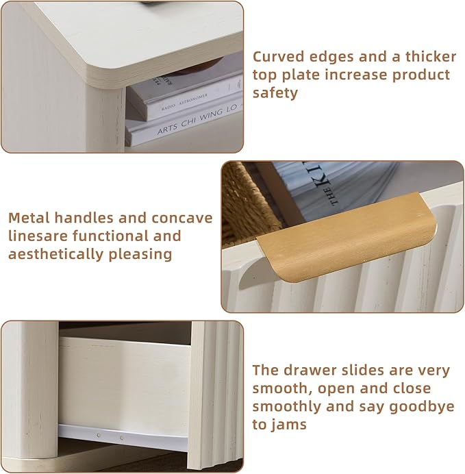 - LEYAOYAO Versatile Modern Nightstand: Our Fluted bedside table boasts a minimalist curve profile and a drawer with a unique fluted panel, which is a perfect blend of modern aesthetics and functional design. The smooth curved edges make your bedroom exude elegance! This night stand can be used not only as a bed side table but also as a living room end table. Add a strong rustic colour to your bedroom and living room
