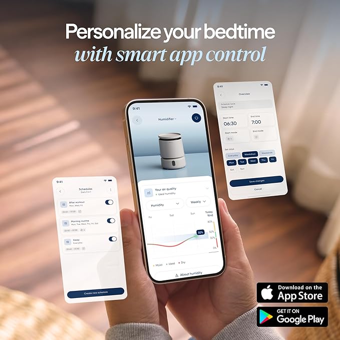 - Easy to use: Refill using top- or bucket-fill, enjoy customizable mood lighting, and clean with a dishwasher-safe tank and washable wick - set schedules and reminders via the app