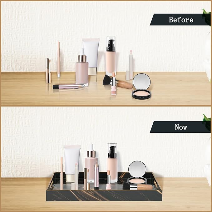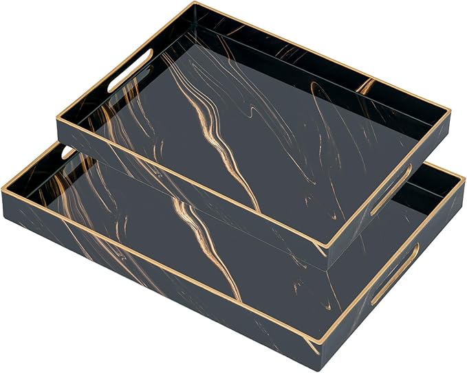 - 【 Multifunctional 】 These marble style kitchen trays is not only a fashionable accessory for your home, but also a practical tool. The 48x35x4cm and 40x30x4cm large size and sturdy structure make it perfect for serving various beverages and dishes, and its smooth handles make it easy to carry from one place to another. In addition, it can be used as a display tray for small decorations, as well as a storage tray for small items such as remote controls, keys, and personal accessories.