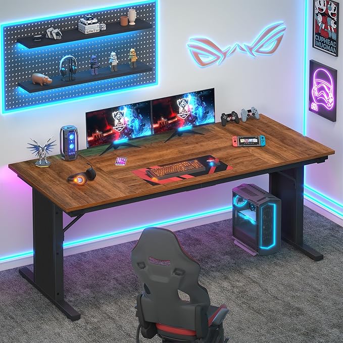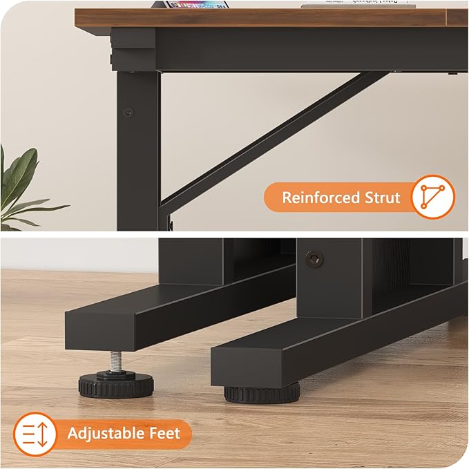 - 【Stylish Design】: This large computer desk features a sturdy T-shaped legs and a vintage wood finish, Modern design and exquisite surface treatment add an elegant touch to any workspace with this computer desk