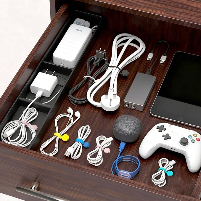 - Colorful Cord Ties for Charging Cables – This set of magnetic cord clips includes 10 reusable silicone magnetic cable ties, each in a bright, distinct color. This makes it easy to tell different cables apart at the office or home—whether they’re computer cords, phone charging cables, or TV cords. These ties for cords simplify cable management through color, and their vibrant hues add a colorful touch to your daily life