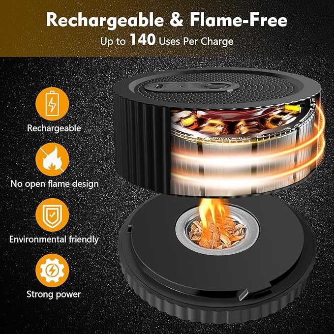 - 【Electric Whiskey Smoker Kit – 140 Uses Per Charge】Upgrade your bar with this electric whiskey smoker kit. No flame, no butane—just pure cold smoke infusion. The rechargeable battery delivers up to 140 uses per charge, making it the perfect cocktail smoker kit and must-have home bar accessories for whiskey lovers, mixologists, and parties.