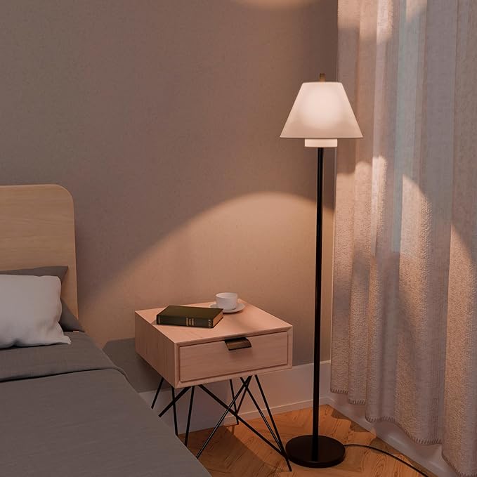 - MODERN DESIGN: a unique, double shade design mixes with a fashionable matte black finish to elevate this 62-inch floor lamp into the epitome of modern design