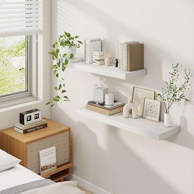 - Maximize Space: Maximize your wall space without sacrificing style. These shelves fit snugly in tight corners, above desks, or in narrow hallways, keeping floors clear while beautifully showcasing your favorite items