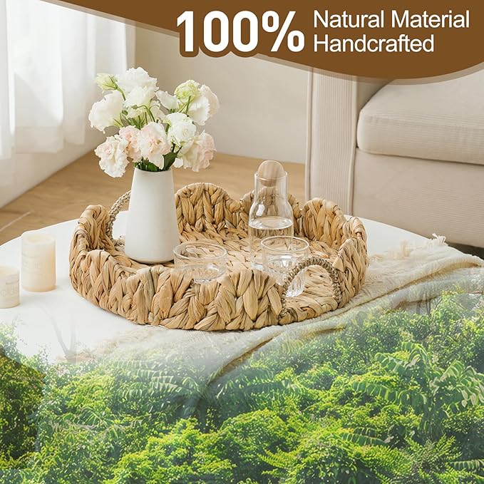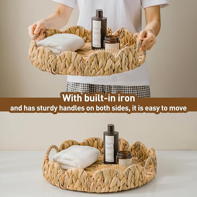 - 【Unique Scalloped Edge Design】:Features artisanal scalloped borders that elevate home aesthetics, transforming this woven tray into a statement centerpiece to light up your home.