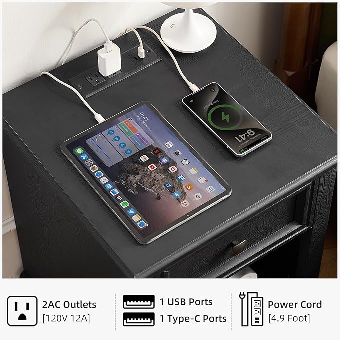 - 【Built-In Charging Convenience】:Each nightstand with charging station includes a built-in power panel, making it easy to charge phones, tablets, or other electronics right from your bed or sofa. Ideal for those seeking a bedside table with charger station that combines function with style.