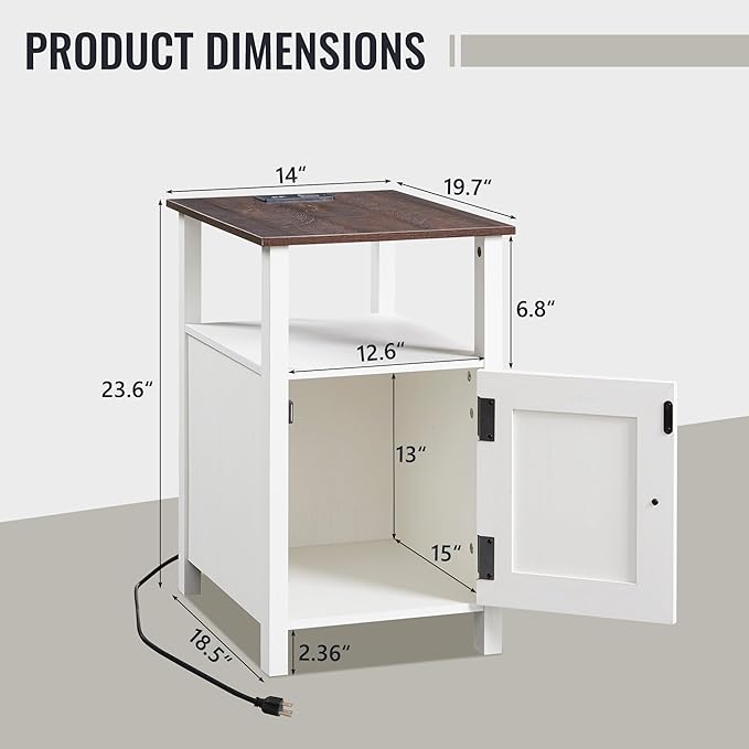 - 【CHARGING STATION】Each nightstand has 1 AC power outlet and 2 USB ports. The night stand set 2 can accommodate 6 devices (Lamp, Tablet, Phone and so on.) charging at the same time, and with a height of 23.6 inches you can reach it from your bed or couch.