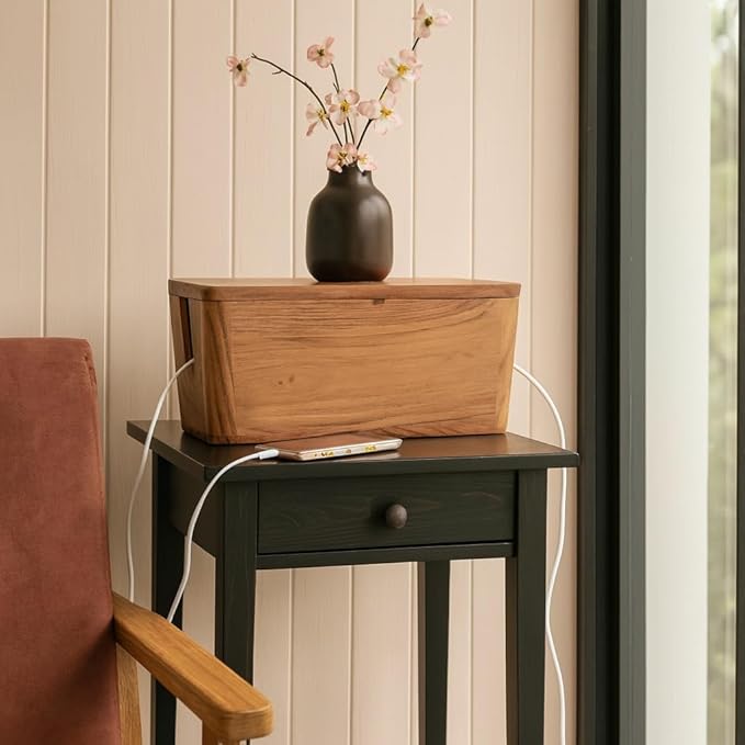 Extra Large Cable Management Box - Acacia Wood - Cable Organizer Box and Power Strip Box for Electrical Cord Management - Hide Desk Cord and Floor Cables - Wire Storage and Organization for Cords
