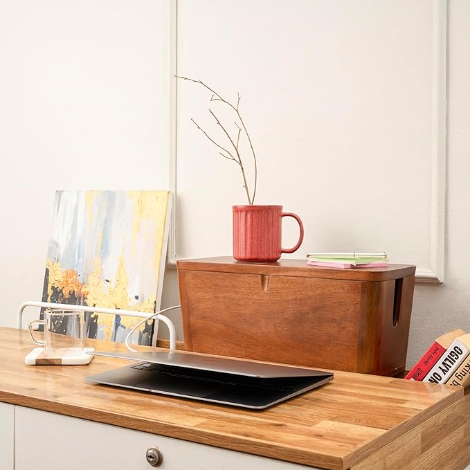 - ELIMINATE CABLE CLUTTER WITH STYLE: Add an elegant and organized touch to your decor with this cable box organizer; This extra large cord management box combines functionality and style