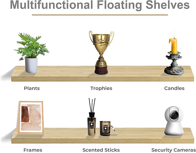 - Versatile & Functional Floating Wall Shelves: Floating shelves can also be used to hold beauty or hair products in the bathroom or bedroom. Place the wall shelves under a mirror in the entryway or exhibit family photos gallery style in a long hallway. Use as bathroom shelf, book shelf for wall, wall shelves for bedroom, above toilet shelf, kitchen shelves, shelves for room wall, floating shelves bathroom, living room wall shelf, display shelf and more