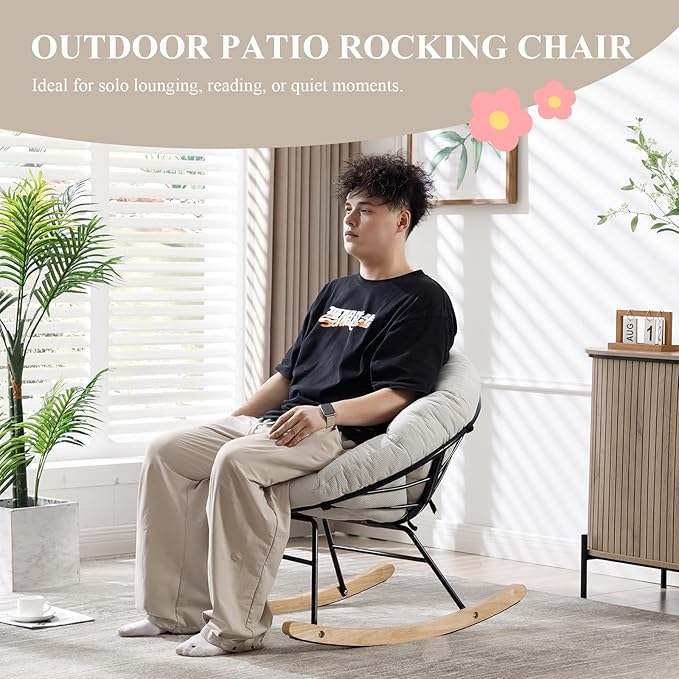 - Elegant Addition to Any Room - Our papasan chair with its rounded shape and extra thick cushion, adds a cozy inviting space to relax whether you're sitting or curling up. Defined by its classic button-tufted design, this comfy glider chair is a fine fit for any high-class aesthetic. Perfect as an saucer rocking chair for patios, decks, or balconies. Ideal for solo lounging, reading, or quiet moments.