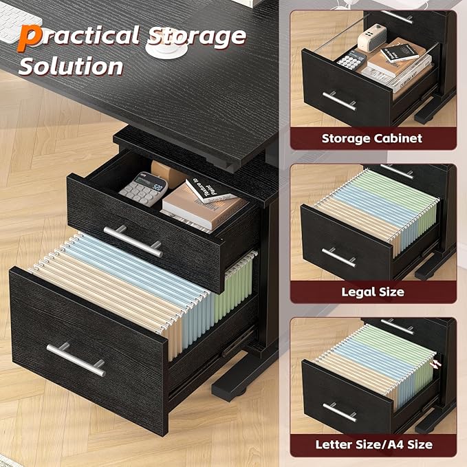- 【Adequate Storage Space】This office desk is equipped with 2 wooden drawers, which are convenient for storing books, documents or daily necessities, keeping the desktop tidy. The filing cabinet can accommodate letter/A4 files, keeping your important documents organized and easy to find