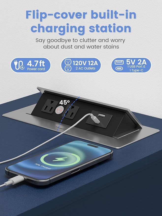 - SAFETY FIRST: The end table comes with 2 USB ports and 2 outlets to easily charge your electronic devices. The highlight of this narrow table is the more user-friendly design of the sockets and the flip-top power bank for maximum safety.