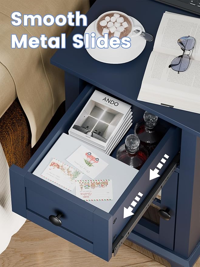 - SPACIOUS STORAGE: The HIFYOBRO living room side table puts your essentials within easy reach. It comes with 1 wooden drawer and 1 cabinet for storing keys, remotes, documents, books and other personal items. The side table features smooth metal rails so you don't have to worry about jams.