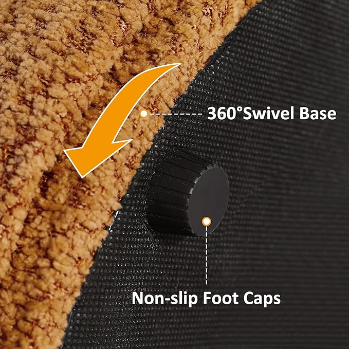 Multi-Functional Boucle Ottoman, Vanity Stool Chair, Sturdy Rotating Wooden Footstool, Suitable for Living Room, Bedroom, and Entryway, Without Installation, Swivel, Curry