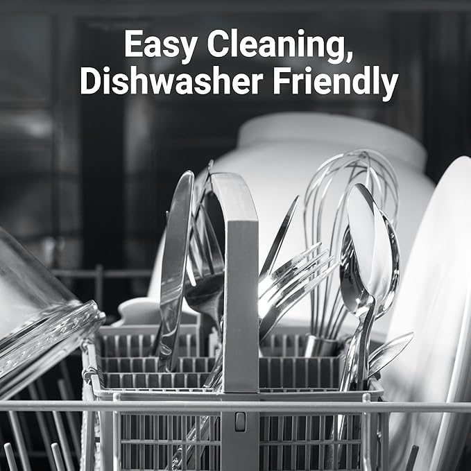 - Dishwasher Safe & Easy to Care For: Cleanup made easy! This dishwasher safe flatware set makes mealtime stress-free. Simply load your utensils into the dishwasher and wipe with a soft cloth to remove fingerprints and marks. Perfect for busy households that still want stylish, quality cutlery.