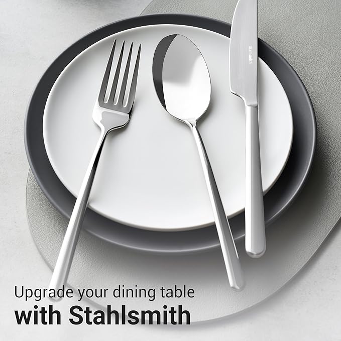 - Smooth Design & Comfortable Grip: Each piece of this kitchen flatware set is thoughtfully crafted with smoothly polished tines, rounded edges, and balanced weight for maximum comfort. Perfect for daily dining or entertaining, this modern cutlery set feels as good in your hand as it looks on your table.