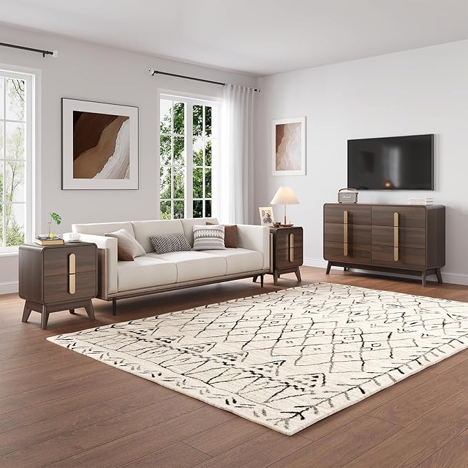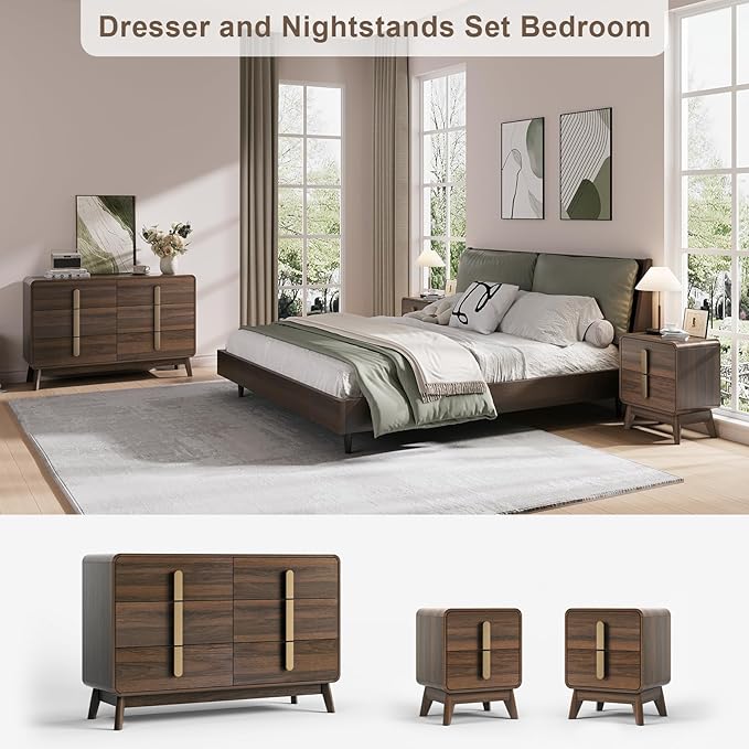 - Refined Mid-Century Modern Style: Add timeless charm to your bedroom with this dresser and nightstand sets 3 piece. Featuring a rich walnut finish, gently curved silhouette, and chic gold-tone handles, this modern bedroom set captures the essence of mid-century design while delivering a warm, sophisticated look.